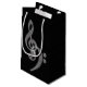 Una elegante y sencilla bolsa de regalo con temas de música blanca y negra - trébol blanco y arcos bajos contra un fondo negro texturizado. Amor musical.