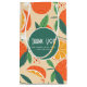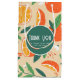 Una bolsa de regalo de agradecimiento fiesta con un ambiente retro. Un patrón compuesto de naranjas en rodajas, naranjas enteros, hojas verdes y flores blancas.