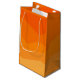 Este saco de regalo tiene un diseño geométrico de cuatro tonalidades de naranja que corren horizontalmente.