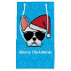 Ahorra el esfuerzo de envolver y agrega algo de diversión a tus regalos de Navidad con esta bolsa de regalo de bulldog francés. El diseño presenta un bulldog francés de color blanco con un sombrero de Santa Claus rojo y gafas de sol aviador con espacio para añadir tu propia redacción en la parte delantera y trasera. Se puede cambiar el color de fondo. Hay diferentes diseños de bulldog francés de colores. También están disponibles los elementos coincidentes.