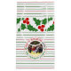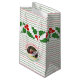 Mariscos de berry y Navidades de rayas verdes rojas y rojas pequeña bolsa de regalo. La parte frontal presenta delgadas rayas rojas y verdes con una guirnalda de baya en el centro y un círculo con una foto familiar, el texto "feliz feriado" y tu nombre. Fotografía © Storytree Studios, Stanford, CA