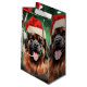 Diseño de Navidades coloridos y alegres con Leonberger usando un sombrero de Santa.