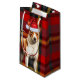 A los amantes del perro les encantará recibir o regalar esta linda y divertida bolsa de regalos de vacaciones con un adorable Basenji usando accesorios festivos en una manta en tonos rojos y verdes.