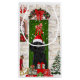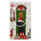 Navidades de perro caniche sentados afuera de la casa decorada con corona de Navidades, el árbol de Navidad es una idea de regalo perfecta para los amantes del perro.