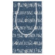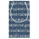 Texto blanco de SANTA PAWS con copos de nieve, huella de madera, estrellas, sobre fondo azul. El texto es editable.