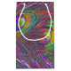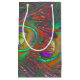 Esta impresionante bolsa de regalo muestra una divertida fotografía festiva de algunas plumas de pavo real tomadas con fotografía macro. Se han utilizado técnicas de coloración artificial para enfatizar el detalle. El resultado es un efecto de mejillón morado con las cucharadas que muestran tonos rojos y verdes.