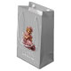 Bolsa de regalo de Feliz Navidad con un ilustracion nostálgico de un chica angélico con helado y rosa pálido sobre un fondo plateado. Una exclusiva y grandiosa bolsa de regalo. Personalizar con su elección de texto en la parte delantera y trasera. Que tengan una Nostálgica Feliz Navidad. Disponible en diferentes colores, tamaños y acabados.