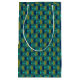 Esta bolsa de regalo tiene un diseño moderno de avales en verde azulado de semicírculos en verde y marina dentro de ellos sobre un campo de turquesa.