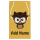 Personalizar esta tierna bolsa de regalo de búho marrón con un nombre o texto de su elección