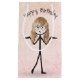Chica de palo con pelo rubio y gafas en el fondo de terrazo para cumpleaños El texto puede ser editado o borrado.