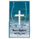 Bolso de regalo de agua del bautismo para que usted sea personalizar. Sencillo diseño de la época de las olas del océano y una cruz. Diseño con el bautismo adulto en mente pero igualmente adecuado para el bautismo infantil o la cristalización.
