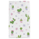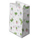 Sacos de regalo de caca con cactus de pera espinosos personalizados, cactus de bebé en macetas, botas, tazas de muffin y flores con forma de estrella. Decoración colorida: tonos verdes, rosa pastel y violeta sobre un fondo blanco. Agradable para los fiestas de cactus, como la ducha para bebés, el cumpleaños y otros eventos.