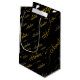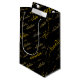 Bolsa de regalo negra con tonos de oro en diferentes tamaños con el texto celebración en una fuente de escritura con glifo. Esta bolsa de regalo y diseño es adecuada para la mayoría de las ocasiones y celebraciones. Este diseño moderno y minimalista en oro sobre negro lo hace elegante y exclusivo.
