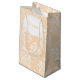 Primera Comunión Brunette cabello Niño Gracias bolso de regalo para presentarle a sus invitados después de la ceremonia, con un patrón de Damasco beige. Todo el texto se puede cambiar para adaptarlo a sus propios requisitos. Gráficos de BlackCatsMedia y Zenwaredesign.