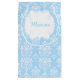 Primera Comunión Niño afroamericano Gracias bolso de regalo para presentarle a sus invitados después de la ceremonia, con un patrón de Damasco azul. Todo el texto se puede cambiar para adaptarlo a sus propios requisitos. Gráficos de BlackCatsMedia y Zenwaredesign.
