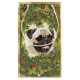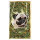 Un lindo retrato de Pug centrado en una corona de Navidades.