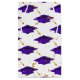 Gorra morada de graduación con confeti dorado sobre fondo blanco. Se puede cambiar el color de fondo.