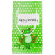 Rana verde dulce sobre fondo de neón verde y polka blanco con burbuja de habla para cualquier cumpleaños de edad. El texto se puede editar.