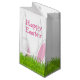 Años de conejito blanco de Pascua en césped verde brillante. El texto es editable.