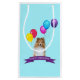 Una linda foto de Sheltie Shetland Sheepdog deseando "Feliz Cumpleaños" y globos de fondo agrega colores a esta hermosa bolsa de regalo