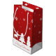 Moderno y minimalista ilustracion de Navidades simples con siluetas blancas de reno, árbol, muñeco de nieve y copos de nieve con Feliz Navidad con fondo rojo.