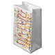 Esta bolsa de regalo tiene un diseño moderno de mediados de siglo de calamares que corren verticalmente en colores retro con estallidos negros y círculos dispersos por el diseño.