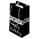 Pequeña bolsa de regalo de estilo de tote de papel negro acentuada por el corazón azul.