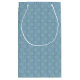 Esta bolsa de regalo tiene un diseño art deco de círculos verdes conectados con líneas en un campo de azul.