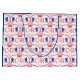 Rey Carlos III y Reina Camila - CIIIR - Bolsa de Regalo de Coronación de mayo de 2023 para celebrar la Coronación Real el 6 de mayo de 2023. Tema patriótico rojo, blanco, azul con corona y leones desenfrenados dentro de un patrón de Ogeo. Un gran recuerdo y regalo para los aficionados a la realeza.