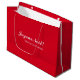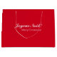 Una bolsa de regalo roja en francés e inglés deseando feliz navidad. ¡El rojo de esta bolsa es un color rojo Navidad que lo hace muy festivo y cristiano!