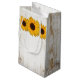 Bolsa Rústica de Regalo de Sunflower Lace & Burlap. Hermosa bupata rústica y encaje sobre un fondo de madera encalada. Un girasol amarillo completa el diseño.