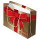 En algunos concursos, como los que se celebran en la feria del condado o en las aulas, una cinta roja es la segunda que una cinta azul. En la familia de las cintas de sensibilización, la cinta roja es simbólica de las personas comprometidas a conducir sobrio durante las vacaciones y es aún más ampliamente reconocida como apoyo y solidaridad entre las personas que viven con VIH/SIDA. El rojo también está asociado con la vida, el amor y la pasión. Durante las vacaciones, es un color favorito debido a las bayas y manzanas huecas que se usaron para decorar árboles de vacaciones hace mucho tiempo. Los cristianos también relacionan el color con la sangre de Jesucristo cuando fue crucificado lo que, extrañamente, parece inapropiado y apropiado, pues los Navidades es una celebración del NACIMIENTO de Cristo. Este hermoso lazo y arco generado por computadora se ofrecen en un fondo digital de "oro metálico" que, por supuesto, también tiene significado en la historia de los Navidades. En la Biblia, Mateo 2:11 dice, "Y cuando entraron a la casa, vieron al niño pequeño con María su madre, y se cayeron, y lo adoraron: y, habiendo abierto sus tesoros, le entregaron regalos; oro, incienso y mirra". Esta magnífica bolsa de regalo hace una hermosa presentación para su regalo cuidadosamente elegido.