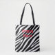 Este diseño presenta un patrón de impresión de cebra en blanco y negro en ambos lados y se mezclaría con cualquier equipo de compras. El texto de ambos lados puede cambiarse para adaptarlo a sus necesidades.