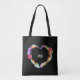 Bolsa de tetas para mujeres con un corazón de estilo boho en plumas acuarelas, flores y suculentos, todo sobre un fondo negro dramático. Personalizar con monograma o nombre.