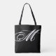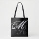Una elegante bolsa de tetas negra con tu nombre e iniciales monogramadas en un estilo de letra de guión