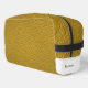Descubra nuestra elegante bolsa de artículos de tocador elaborada a partir de vibrante cuero de color amarillo dorado. Este accesorio duradero y llamativo, con una superficie texturada y granulada con paros y hoyuelos distribuidos de manera uniforme, ofrece elegancia y funcionalidad para sus necesidades básicas de viaje.