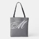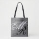 Un elegante bolso de teta gris con tu nombre e iniciales monogramadas en un estilo de letra de guión