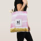 Colores de agua rayados rosados y dorados monogramas Tote Bag
