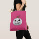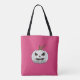 Conozca esta temporada con esta elegante bolsa de tote rosa con una encantadora calabaza blanca en el centro. Es una buena elección para los amantes de Halloween que prefieren un suave toque estético a la decoración tradicional de otoño. Excelente para uso diario, truco o trato, o como una bolsa de compras reutilizable y fresca. Haz un divertido regalo para los fanáticos de Halloween rosa - también conocido como Pinkoween!