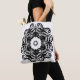 Bolsa moderna de la tote con adornos florales negros sobre el fondo blanco