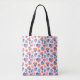 Muestra tu orgullo americano con esta elegante bolsa de tote blanca con un vibrante patrón de formas azules, rojas y blancas como corazones, lágrimas y círculos, cada uno decorado con diferentes patrones como rayas, puntos de polka y estrellas. Las manillas negras aportan un toque moderno, por lo que esta bolsa de tocador es a la vez moderna y funcional. Perfecto para llevar lo esencial con un toque patriótico.