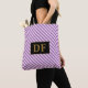 Bolsa de tote con tiras moradas iniciales del pers