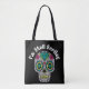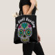 Hermosa bolsa de tetas con letras de "I'm Skull Surfing" con el cráneo colorido y decorado de forma abstracta para la temporada de Halloween.