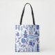 Bolsa De Tote De Chinoiserie En Conejo Azul Y Blan