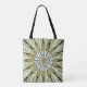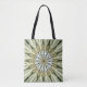 Un fractal kaleidoscópico crea un círculo de plumas grises, dándole a esta bolsa el sentimiento de arte nativo americano.
