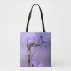 Bolsa de té diseñada con una hermosa fotografía de flores moradas.
