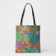 Colorido y estilizado collage de flores tropicales vibrantes en una elegante bolsa de la Tote de Lisa Lorenz