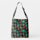 Esta bolsa de tocador de cuerpo cruzado se muestra con un diseño de impresión de copos de nieve de vacaciones de Navidades multicolores. Tamaño medio mostrado. Tiene correas negras. Personalizar este artículo o compra tal cual. Imagen de stock vecteezy.com