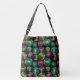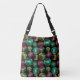 Esta bolsa de tocador de cuerpo cruzado se muestra con un diseño de impresión de copos de nieve de vacaciones de Navidades multicolores. Se muestra un gran tamaño. Tiene correas negras. Personalizar este artículo o compra tal cual. Imagen de stock vecteezy.com