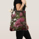 Flowe4r rosa florece en una bolsa de tote con fotografía de árbol.